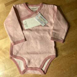Ljusrosa body med lång ärm och volangdetaljer. Knäppning nedtill.