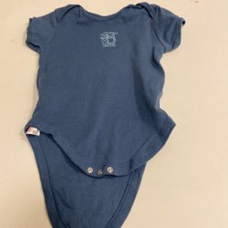 Blå body med långa ärmar. Bodyn har ett mönster med stjärnor och prickar på framsidan. Ärmarna har ett tryck med tecknade figurer och regnbågar.