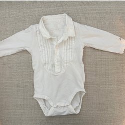 Långärmad body med krage och fluga i storlek 80 från Lindex.