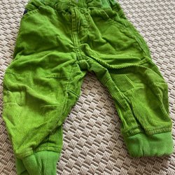 Två byxor från Polarn och Pyret i storlek 56, ett par petrolblå och ett par äppelgröna.