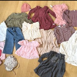 Ett paket med barnkläder i storlek 98/104. Innehåller bland annat en härlig jacka från Polarn & Pyret och andra bra kläder från Lindex & H&M.