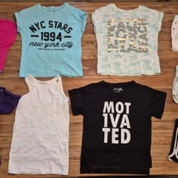 Klädpaket för flicka I strl 122/128. Kläderna är I byskick-använt skick. Det flesta plaggen är I riktigt fint skick. Legginsen är super varma och gosiga inuti, oerfekt till hösten och vintern! Två pyjamasar, litet hål efter att dottern fastnade (se bild) annars jätte fint skick.