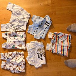 Ett sött paket med babykläder i neutrala färger & jordnära färger