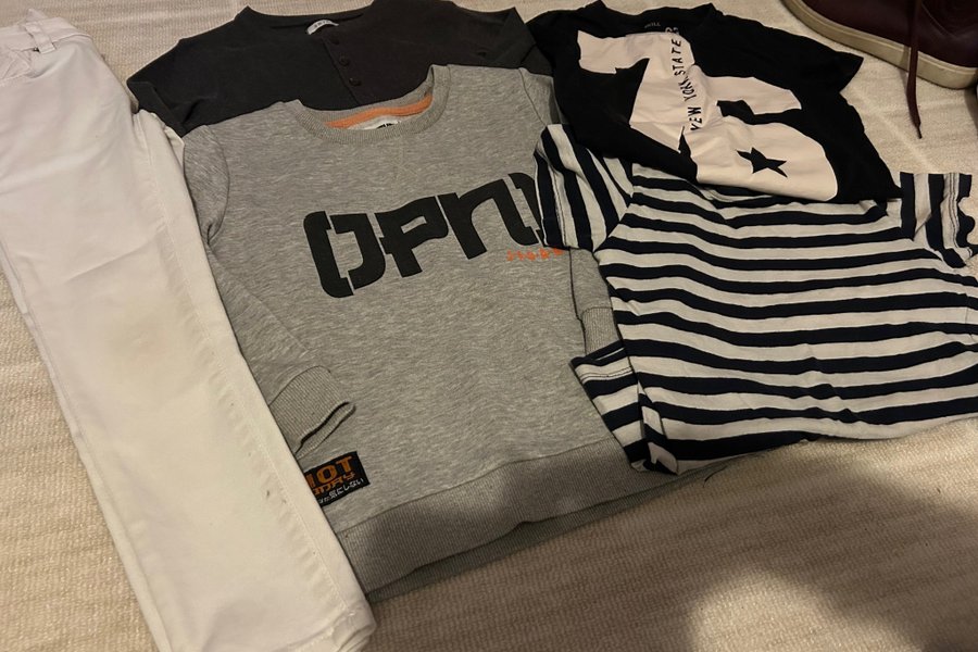 I fint skick. 1par mjuka jeans med ställbar midja, 2tshirt, 2 tröjor.