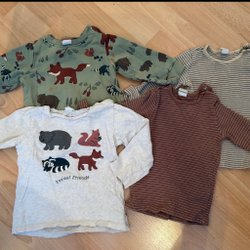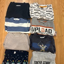 Detta är ett klädpaket med blandade tröjor och sweatshirts med olika tryck och motiv. Här finns bland annat Spiderman, Batman, Minecraft, Musse Pigg och andra populära figurer. Olika färger och stilar.