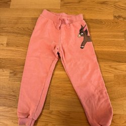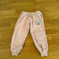 Sött set från Newbie med ett rosa mönster av svanar och blommor. Toppen har långa ärmar och små volanger på axlarna. Byxorna har resår i midjan.