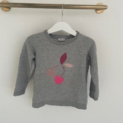 En grå tröja med ett tryck på framsidan. Tröjan har långa ärmar och en rund halsringning.