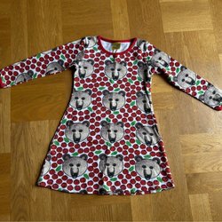 Söt pepparkaksklänning /pepparkaksdräkt i brun sammet från Åhlens. Vita ”kristyr”-detaljer. Strl 110/116 och hatten strl 50/52 (men den är stretchig). Hatten som en basker. Fint skick. Nytvättad i parfymfritt.