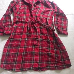 Jättesöt röd bomullsklänning med lång ärm. Jag har sytt klänningen själv.