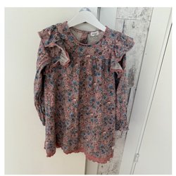 Vit klänning med blommigt mönster och volangärmar. Klänningen har en söt design med blommor i olika nyanser och vackra detaljer i ryggen.