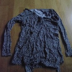 Vit klänning med lång ärm och ett mönster av regnbågar och svarta prickar. Klänningen har en rynkad kjol.