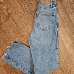 Söt, ljusblå klänning från C&A i storlek 104 (4 år). Klänningen har broderade detaljer med vita blommor och spetskant nedtill. Den har volanger vid axlarna och ett knytband i midjan. Klänningen knäpps med knappar i ryggen.