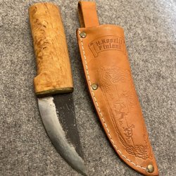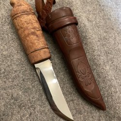 Fantastiskt hantverk i litet format, det ligger nog lika många timmar bakom denna som en fullstor kniv. Dessa småknivar av honom dyker sällan upp, tillfälle för samlaren!