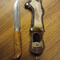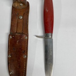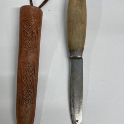 En klassisk Mora kniv med trähandtag. Perfekt för friluftsliv och vardagsbruk.