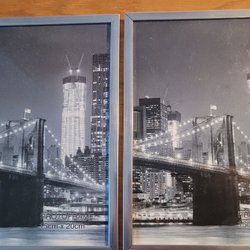 Fotoramar med gulmetallramar med glas. 2 st yttermått 10x15 och den vikbara 2 delar 9x12,5 cm.