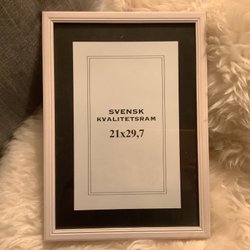 Fotoram i trä med en guldfärgad innerkant. Mått i ytterkant 43 x 33 cm. Ramen har fått skavmärken från att den legat emot andra saker. Lämplig för ommålning. Ingen anmärkning på glaset.