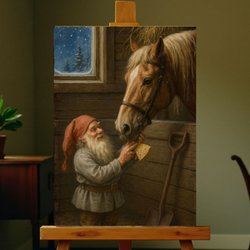 Tavlan är tryckt och har en hård stomme av träfiber. Den är i mycket fint skick och kan stå eller hängas som den är. Baktill finns en hängare i metall. Mått cirka 40*28cm. Om du undrar något, så fråga gärna innan du lägger bud. Var vänlig att betala inom 24 timmar vid vinst.