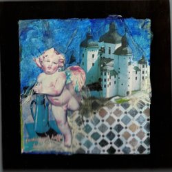 En vacker tavla som föreställer en religiös figur. Den har en guld-färgad ram och kan hängas upp på väggen eller ställas på en plan yta.