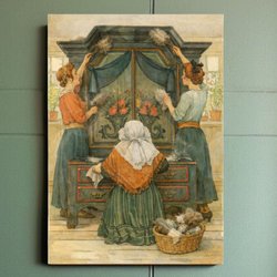 Tavlan är tryckt och har en hård stomme av träfiber. Den är i mycket fint skick och kan stå eller hängas som den är. Baktill finns en hängare i metall. Mått cirka 40*28cm. Om du undrar något, så fråga gärna innan du lägger bud. Var vänlig att betala inom 24 timmar vid vinst.