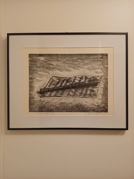 En unik konstupplevelse för den som uppskattar uttrycksfull enkelhet och stark symbolik. Tavlan porträtterar ett instrument i en melankolisk miljö och heter "Musik i luften" nr 3/35 signerad Jan Runefelt 1985.