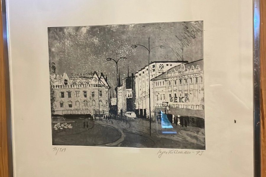En inglasad tavla med motiv från Malmö. Signerad av konstnären Inger Kihlman 1973 och numrerad 46/200.