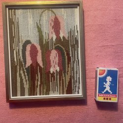 Motivet är utfört i tråd på textilbakgrund.