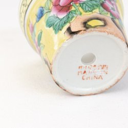 Grön tulpanformad kruka skål 9cm hög 11cm i diameter tror den är ifrån portugal se märkning i botten.