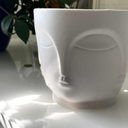 Vit blomkruka med räfflad design. Perfekt för dina växter och blommor.