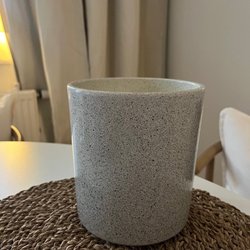 Vit kruka med dekorativ design. Perfekt för växter eller som en inredningsdetalj.