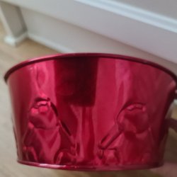 Blått, typ petrol, ytterfoder på fot med reliefdekor. Märkt med 2530/14 undertill. Troligen tillverkad i Tyskland.