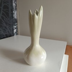 Vas i keramik. Har sett liknande från Uppsala Ekeby, men vet inte om den här också är det.