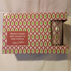 De andra är beige med grön rand och lite blommor.