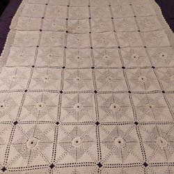 Handvirkat överkast i måtten 195 x 210 cm. Sängen på bilden 120 cm bred. Mycket fint skick. I princip oanvänt.