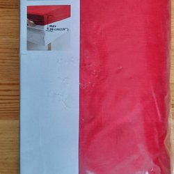 Ett tygstycke med blommönster i olika färger. Tyget är stadigt, tror ej bomull kanske polyester, ej stretch. Ca 68 x 200. Legat nerpackat länge, ej tvättat.