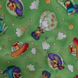 Ett stycke tyg med ett sött björnmönster i rosa och blått. Perfekt för att sy barnkläder, lapptäcken eller andra kreativa projekt.