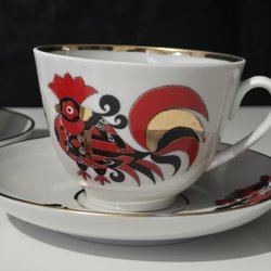 Bring the tradition of Russian royalty to your tea time with the Lomonosov Porcelain Tea cup set Cobalt Net. This porcelain Tea cup is made at the Russian imperial porcelain factory. The tea cup set are hand painted and embellished with real 22-karat gold.