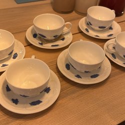 Slitage på gulddetaljerna samt lite nagg på muggarna.