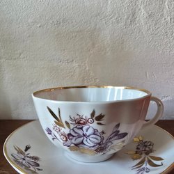 En söt kopp med tillhörande fat. en kaffekopp och fat från Eschenbach Bavaria med mönstret "Linnea". Kan Sam fraktas med andra objekt se mina övriga auktioner .