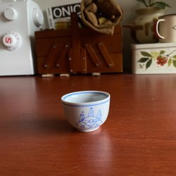 En liten söt kopp med blommönster.