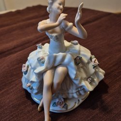 Oanvänd sällsynt Kaffeservis/ espresso servis från Freiberger Porzellan Inglasur ( Tyskland) från DDR tider. Denna servis inkluderar en kaffekanna, en sockerskål, en gräddkanna, sex kaffekoppar och sex fat. En liten prick under glasyren på gräddkannan, fabriks fel ( vanligt på DDR-porslin), se foto, annars i perfekt skick, kom aldrig till användning.