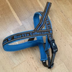 Grå dragsele från Zero DC i storlek L. Nära nyskick, använd max fem gånger. Sista bilden är stulen från tillverkarens hemsida för att visa hur snyggt den sitter när storleken passar. Halsvidden (dvs. där tumstocken visar 20 cm) har jag mätt med måttband till 47 cm. Selen passar alltså inte en hund med grövre huvud.