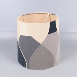 En fin lampskärm i vintervitt med svarta och vita linjer. Höjd 14,5 cm diam 17 cm