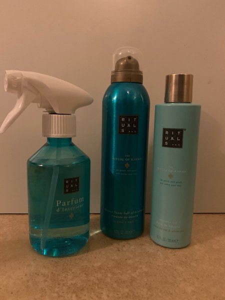 Rituals Karma set innehåller: room spray, shower foam och shower oil.