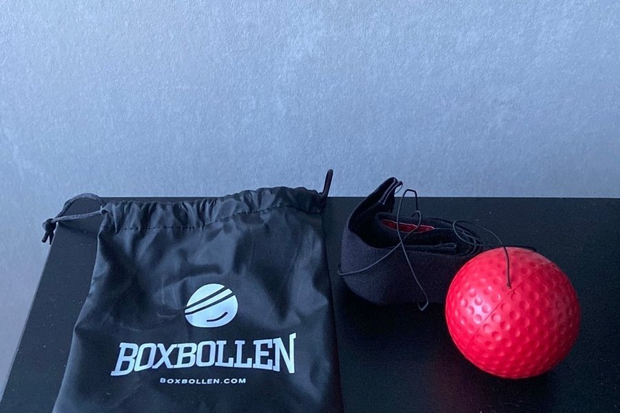 Boxbollen Original är ett träningsredskap för att förbättra koordination och reaktion. Setet innehåller en röd boll, ett justerbart pannband och en förvaringspåse.