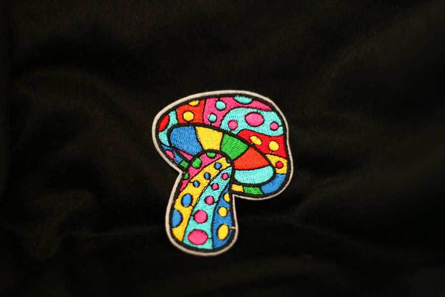 Ett jättefint tygmärke i form utav en Svamp.
