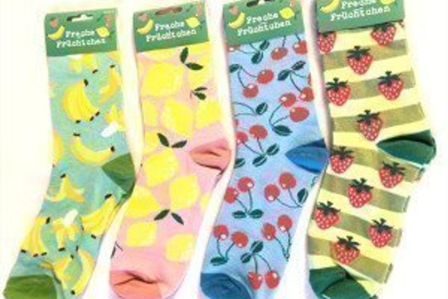 4 stycken strumpor med fruktmotiv.