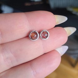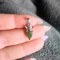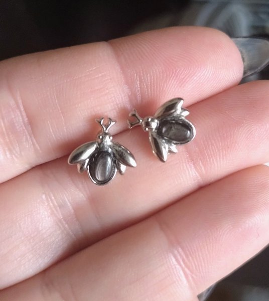 Ett par örhängen med skimrande Hypersten i en skalbaggedesign.