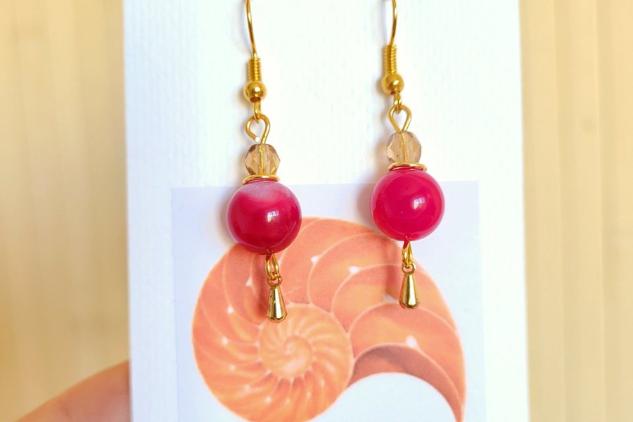 Handgjorda örhängen med facetterade glaspärlor och färgad agat.