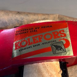 En yxa från KÖLEFORS BRUK. KÖLEFORS. Tillverkad av prima svenskt stål.