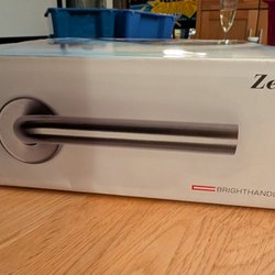 Dörrhandtag i rostfritt stål (tror jag).